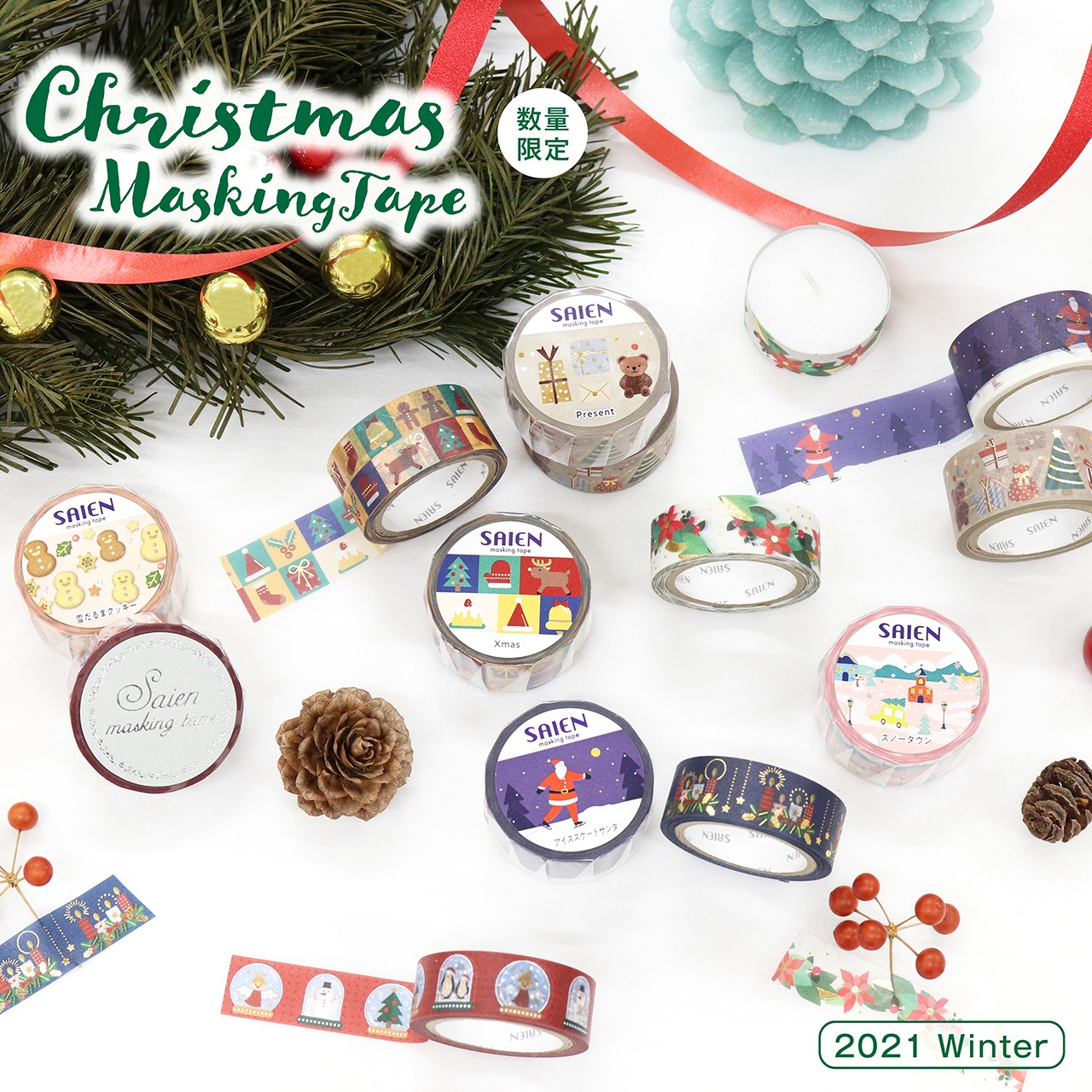 今年のSAIENのクリスマスマスキングテープ は全部で8種類🎅🎄