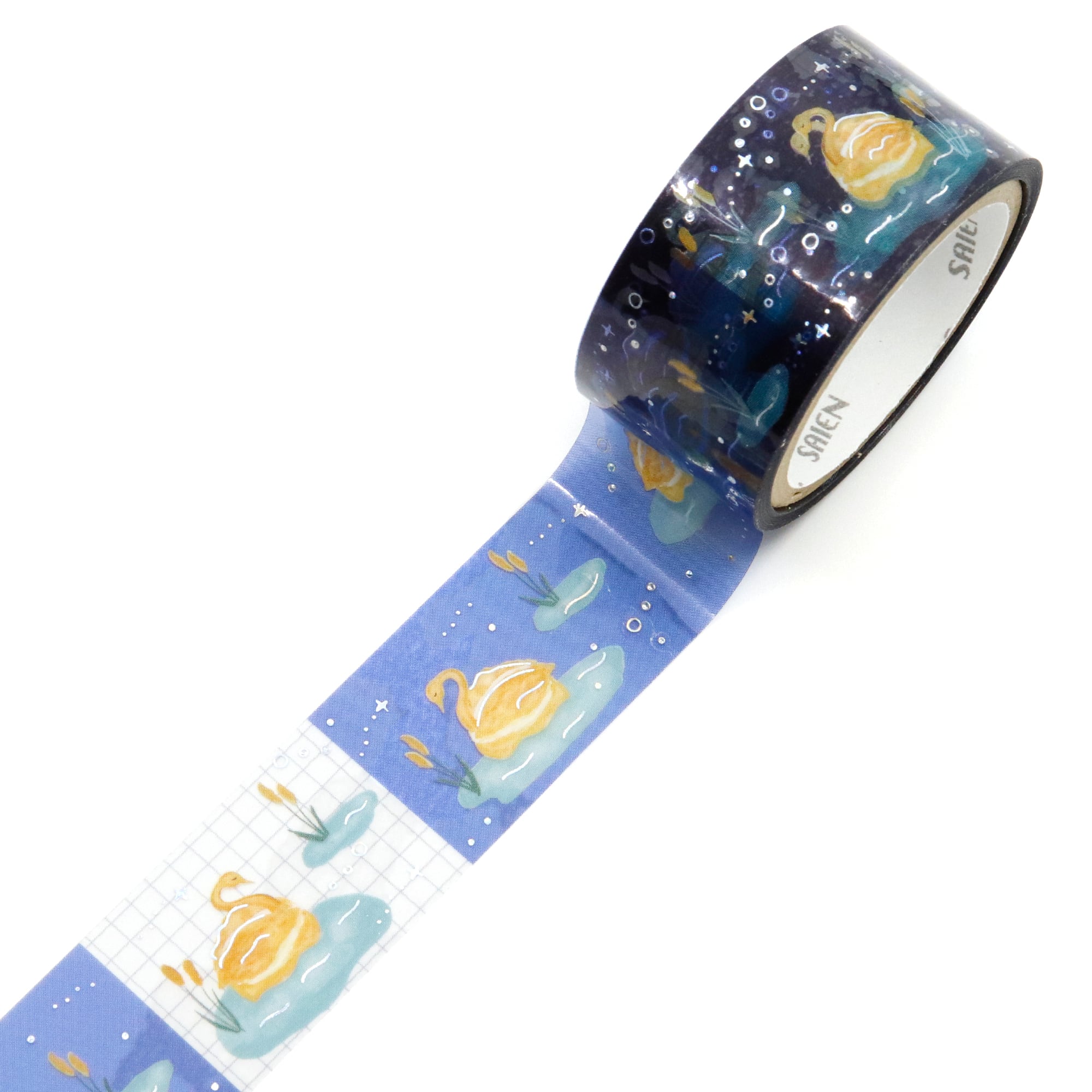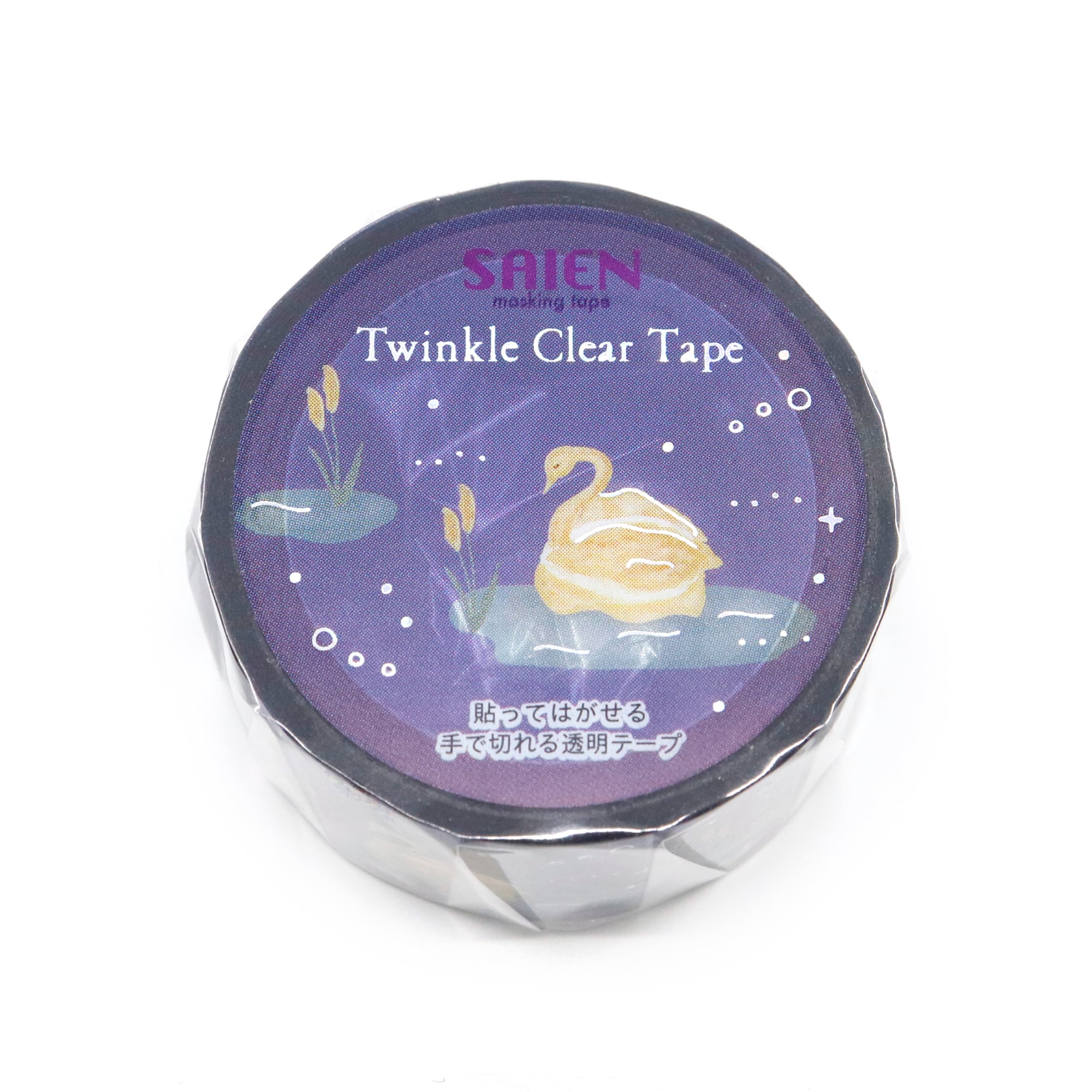 美しいホログラム箔が光の加減で輝き、まるで水際に浮かぶスワンのような幻想的なデザイン。シンプルなクリアテープですが、その存在感は抜群です!